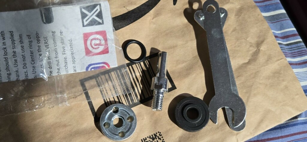 Dispositivo simples, mas eficaz. Este adaptador permite usar todos os discos abrasivos para rebarbadora angular com uma furadeira portátil. A construção é robusta e durável. O pacote inclui instruções detalhadas e as chaves adequadas para apertar rapidamente ou trocar os discos.