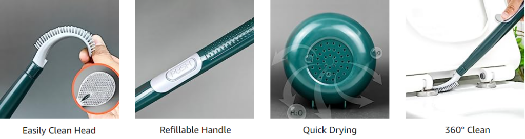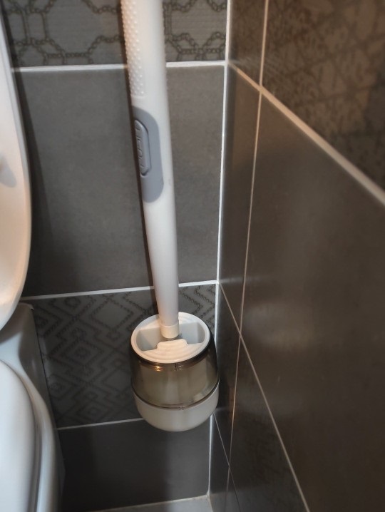 Escova muito elegante💥 Você pode limpar facilmente as áreas sob a tampa do vaso sanitário.