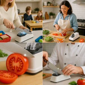 Que mudança! Não acredito que seja tão barato! As minhas facas nunca estiveram tão afiadas. Fácil de utilizar, uma revolução na cozinha!”