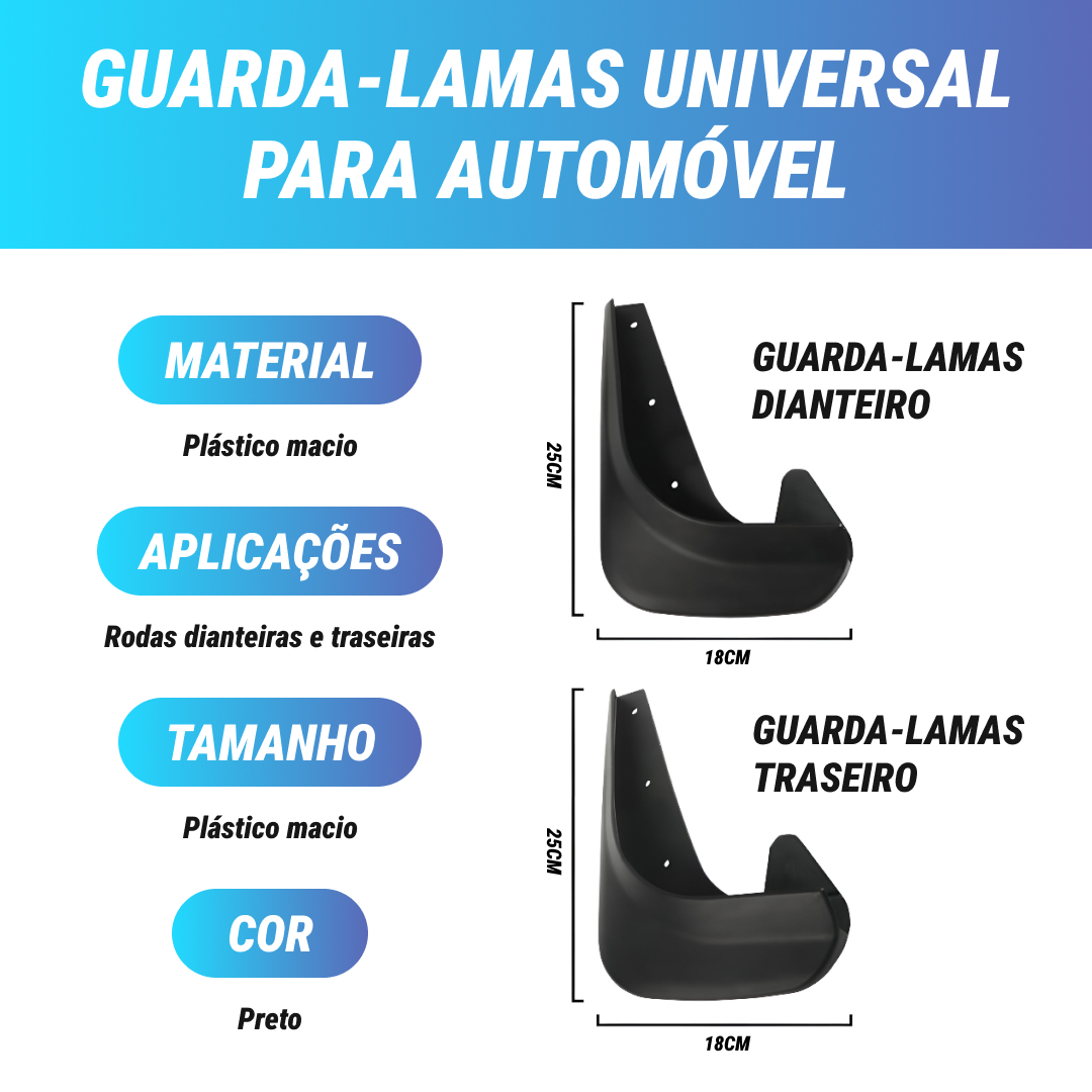 - Inclui 4 para-lamas: 2 dianteiros e 2 traseiros